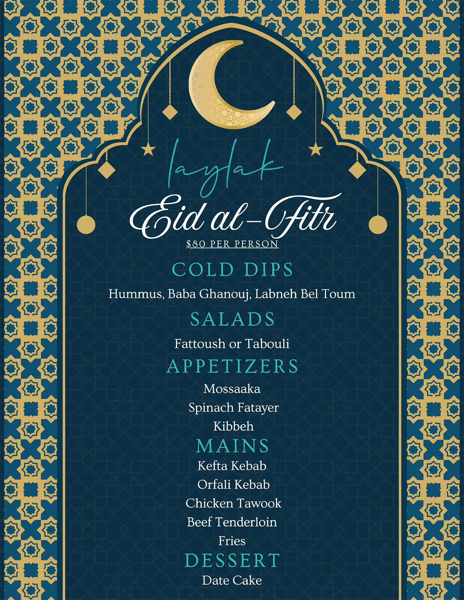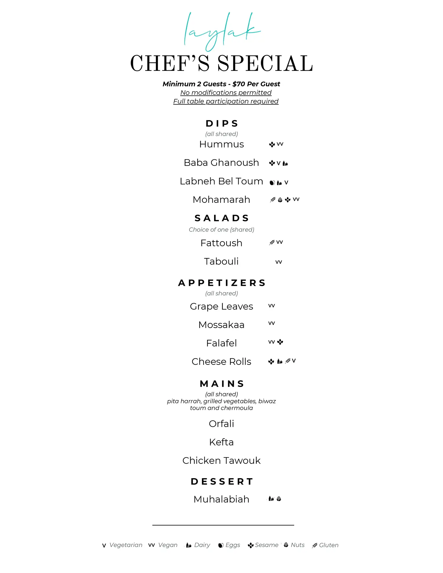 At Laylak, our Executive Chef reimagines Lebanon’s classic flavors with a modern touch. Using fresh herbs, rich spices, and premium ingredients, the menu offers authentic dishes meant for sharing – a true blend of tradition and contemporary taste